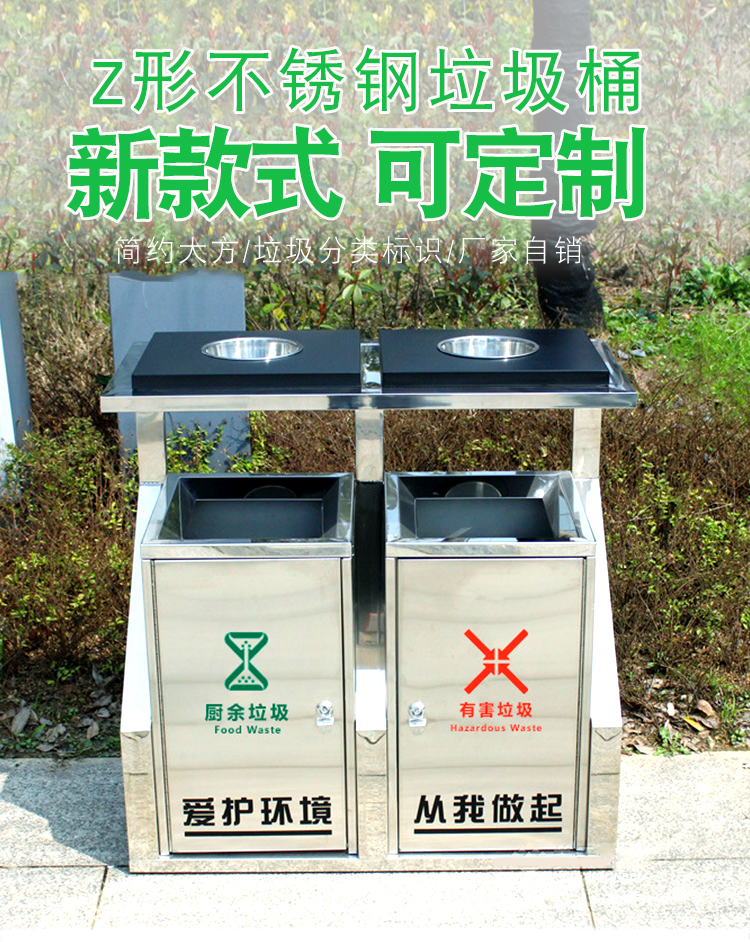 【品名】三分類垃圾桶 【品牌】 中星 【材質(zhì)】優(yōu)質(zhì)鍍鋅板 【內(nèi)膽】鍍鋅板、不銹鋼 【制作工藝】選用優(yōu)質(zhì)不銹鋼鋼板裁剪、壓制、折彎后再焊接而成型 【噴涂工藝】垃圾桶經(jīng)磷化噴砂處理后采用戶...