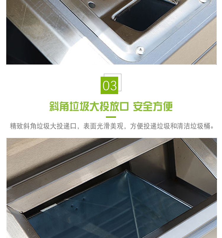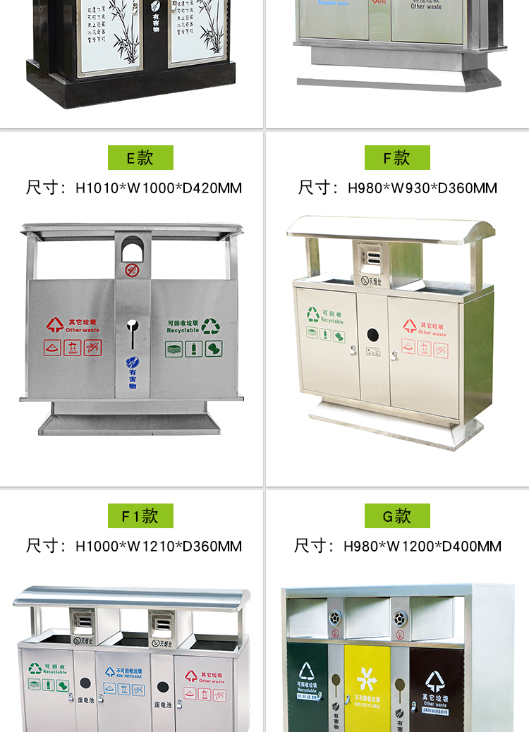 【品名】三分類垃圾桶 【品牌】 中星 【材質(zhì)】優(yōu)質(zhì)鍍鋅板 【內(nèi)膽】鍍鋅板、不銹鋼 【制作工藝】選用優(yōu)質(zhì)不銹鋼鋼板裁剪、壓制、折彎后再焊接而成型 【噴涂工藝】垃圾桶經(jīng)磷化噴砂處理后采用戶...
