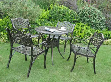 鑄鋁家具具有非常優(yōu)秀的防水防曬性能,可常年置于戶外顏色不變,防火 防水抗酸雨,耐鹽霧。結(jié)構(gòu)結(jié)實抗壓,有一定的彈性,能夠承受重壓,不容易摔傷損壞,容易清洗,不易劃傷損壞。相比其他類型的戶外家具,防腐性能更佳,工藝時尚漂亮,可以鑄成各種雕花和造型。外觀質(zhì)量首先要求家具臺面平整、做工精細(xì)、裝飾細(xì)膩、紋理清晰美觀。