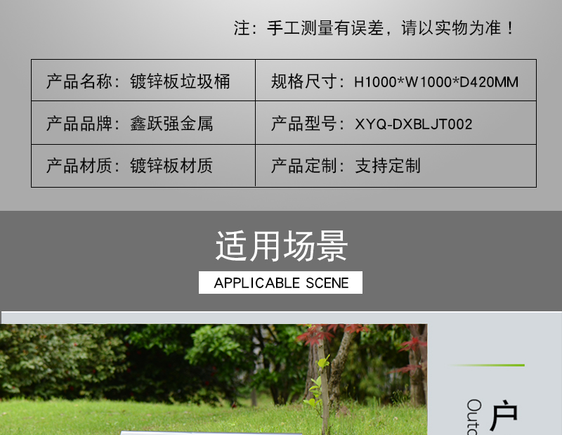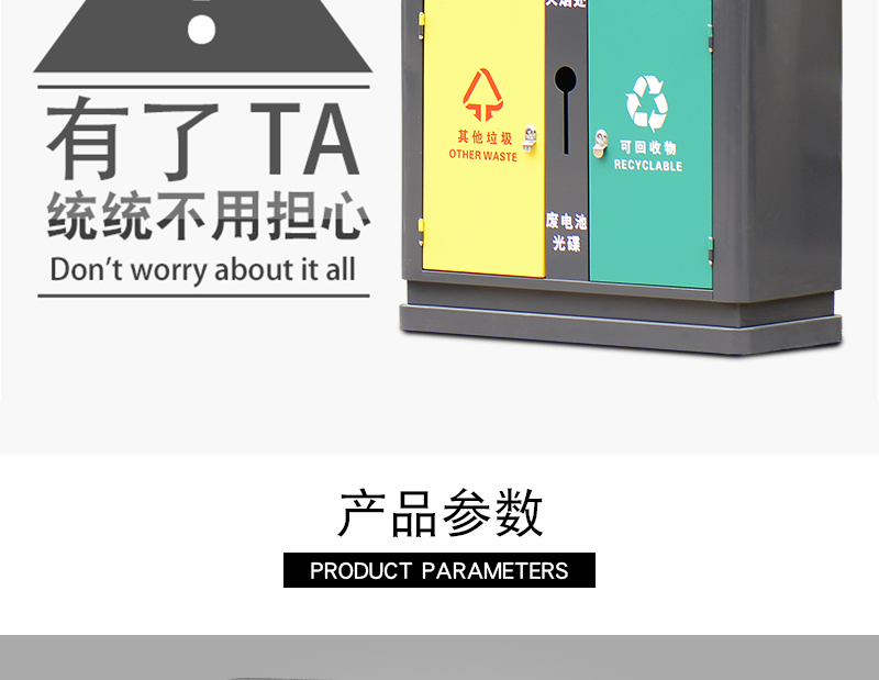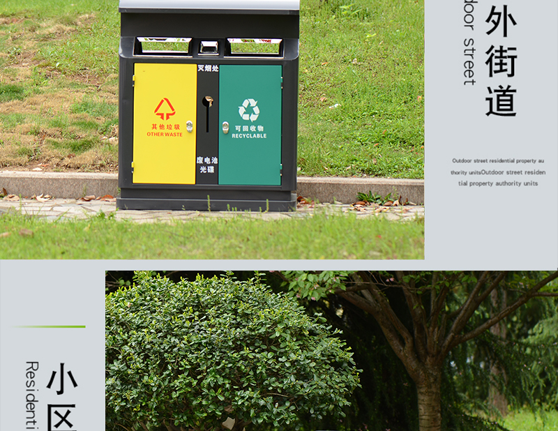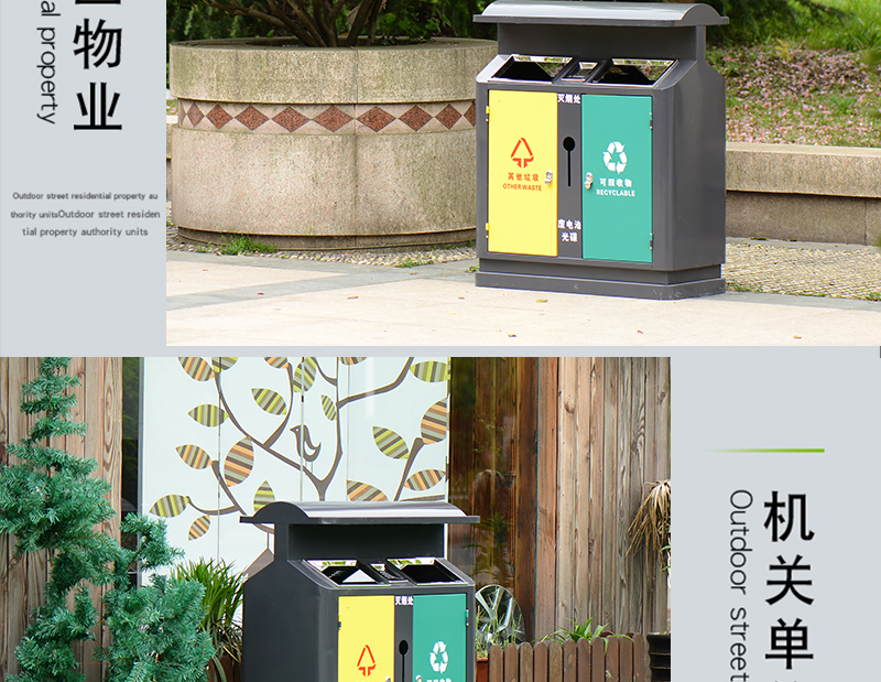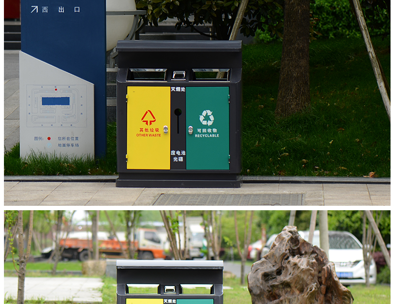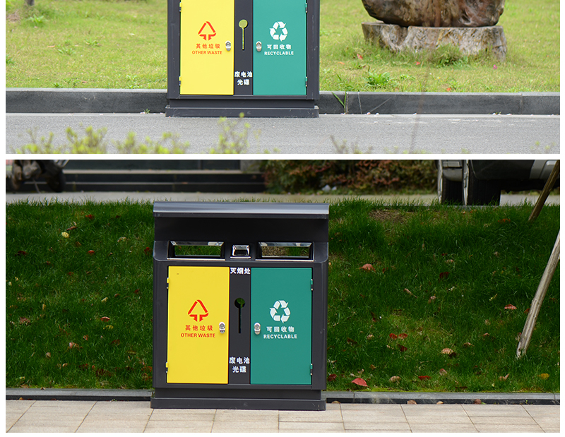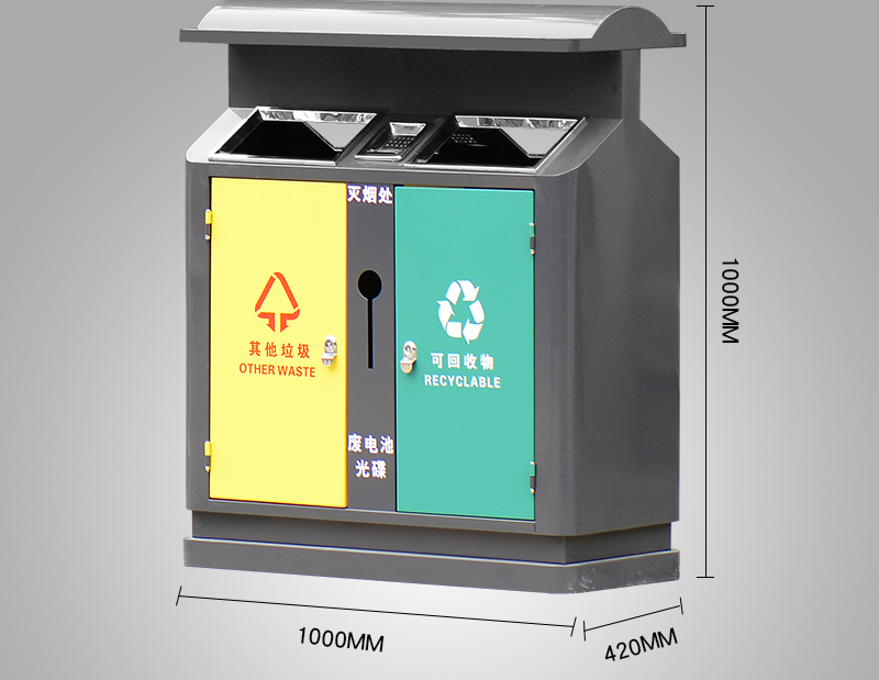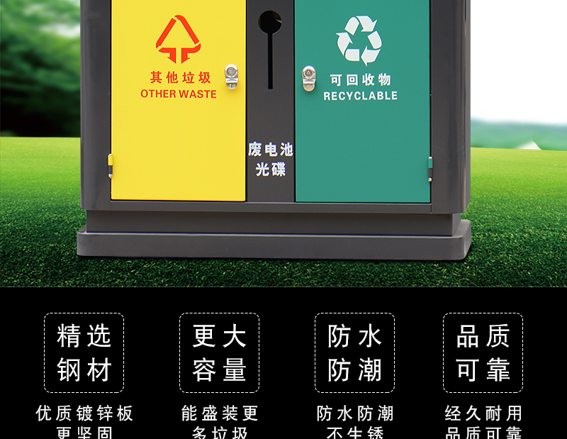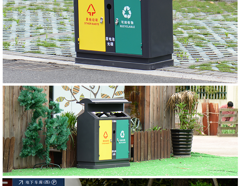 【品名】三分類垃圾桶 【品牌】 中星 【材質(zhì)】優(yōu)質(zhì)鍍鋅板 【內(nèi)膽】鍍鋅板、不銹鋼 【制作工藝】選用優(yōu)質(zhì)不銹鋼鋼板裁剪、壓制、折彎后再焊接而成型 【噴涂工藝】垃圾桶經(jīng)磷化噴砂處理后采用戶...