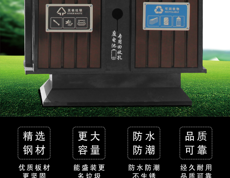 【品名】三分類垃圾桶  【品牌】 中星  【材質(zhì)】優(yōu)質(zhì)鍍鋅板  【內(nèi)膽】鍍鋅板、不銹鋼  【制作工藝】選用優(yōu)質(zhì)不銹鋼鋼板裁剪、壓制、折彎后再焊接而成型  【噴涂工藝】垃圾桶經(jīng)磷化噴砂處理后采用戶...