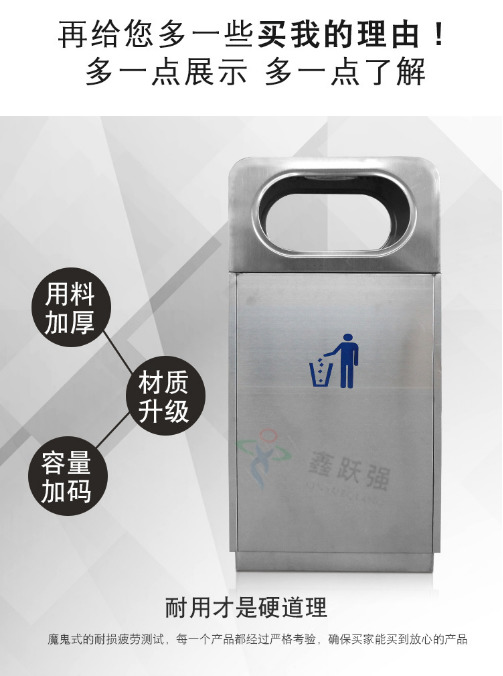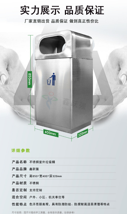 產(chǎn)品名稱 分類不銹鋼垃圾桶 產(chǎn)品型號(hào) ZX-FX111 產(chǎn)品顏色 不銹鋼原色 外桶材質(zhì) 不銹鋼 內(nèi)桶材質(zhì) 鍍...