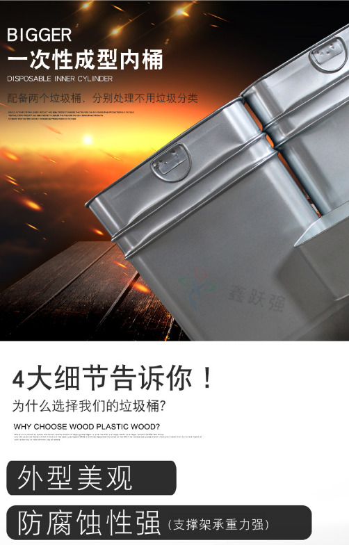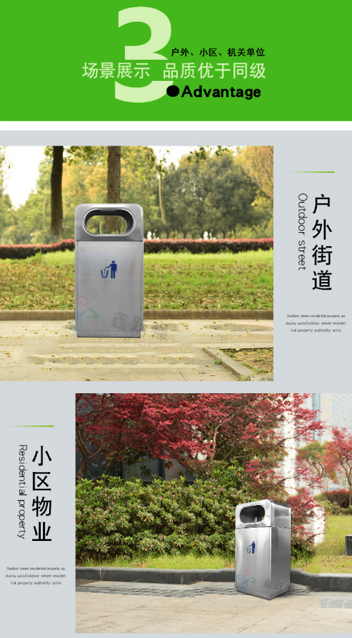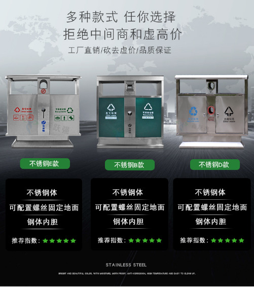 【品名】三分類垃圾桶 【品牌】 中星 【材質(zhì)】?jī)?yōu)質(zhì)鍍鋅板 【內(nèi)膽】鍍鋅板、不銹鋼 【制作工藝】選用優(yōu)質(zhì)不銹鋼鋼板裁剪、壓制、折彎后再焊接而成型 【噴涂工藝】垃圾桶經(jīng)磷化噴砂處理后采用戶...