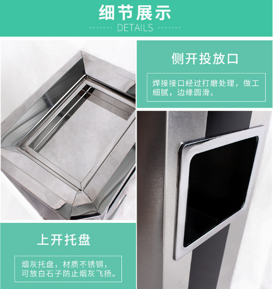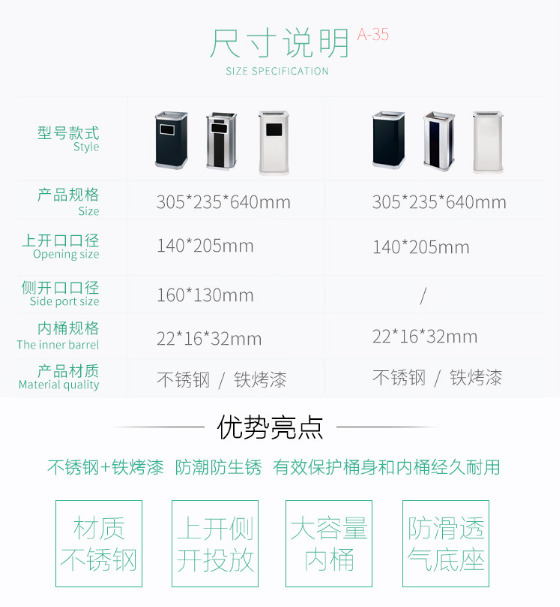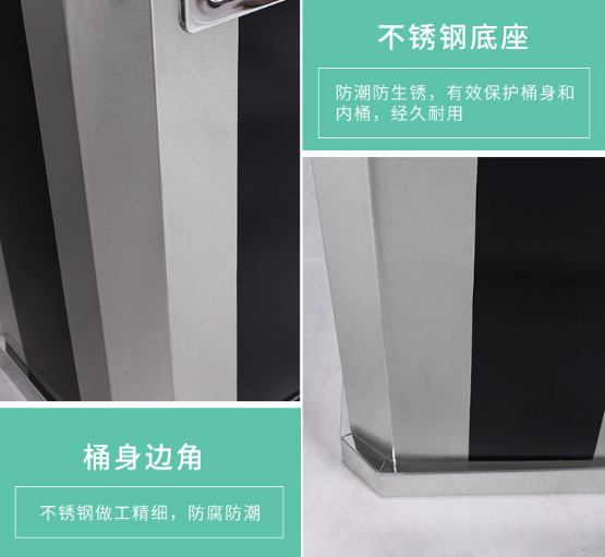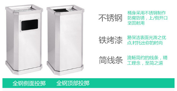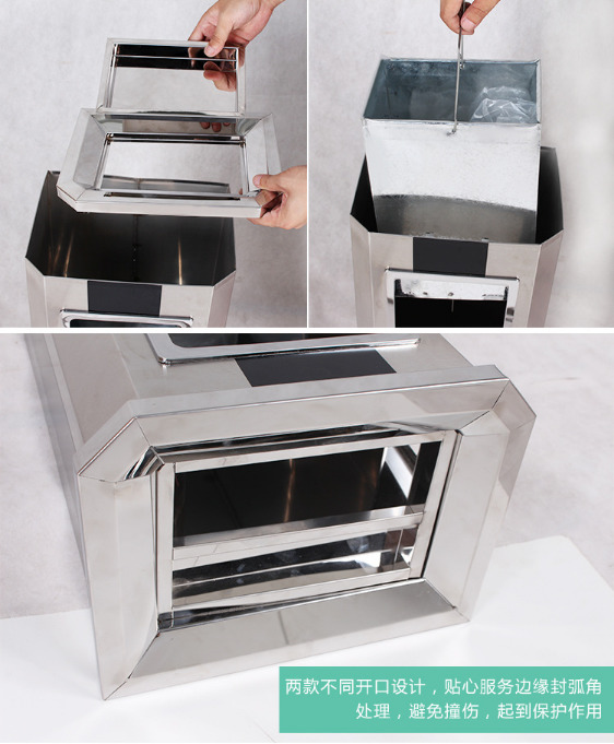 【品名】三分類(lèi)垃圾桶 【品牌】 中星 【材質(zhì)】?jī)?yōu)質(zhì)鍍鋅板 【內(nèi)膽】鍍鋅板、不銹鋼 【制作工藝】選用優(yōu)質(zhì)不銹鋼鋼板裁剪、壓制、折彎后再焊接而成型 【噴涂工藝】垃圾桶經(jīng)磷化噴砂處理后采用戶...