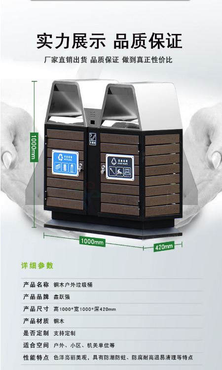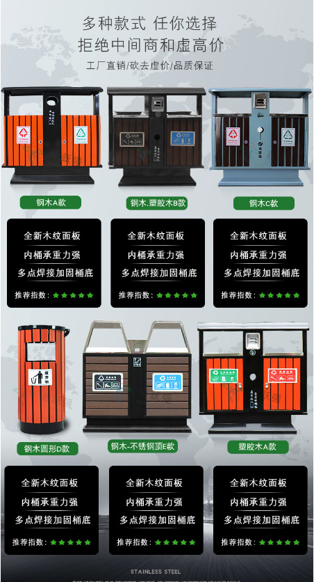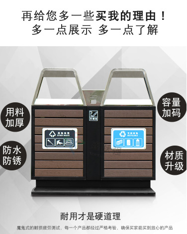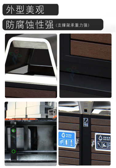 【品名】三分類垃圾桶 【品牌】 中星 【材質(zhì)】?jī)?yōu)質(zhì)鍍鋅板 【內(nèi)膽】鍍鋅板、不銹鋼 【制作工藝】選用優(yōu)質(zhì)不銹鋼鋼板裁剪、壓制、折彎后再焊接而成型 【噴涂工藝】垃圾桶經(jīng)磷化噴砂處理后采用戶...