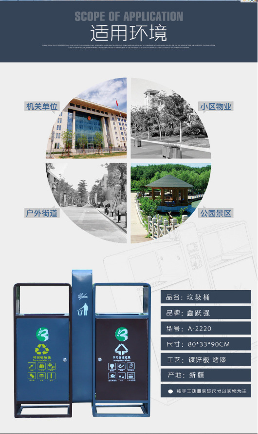 【品名】三分類垃圾桶  【品牌】 中星  【材質(zhì)】?jī)?yōu)質(zhì)鍍鋅板  【內(nèi)膽】鍍鋅板、不銹鋼  【制作工藝】選用優(yōu)質(zhì)不銹鋼鋼板裁剪、壓制、折彎后再焊接而成型  【噴涂工藝】垃圾桶經(jīng)磷化噴砂處理后采用戶...