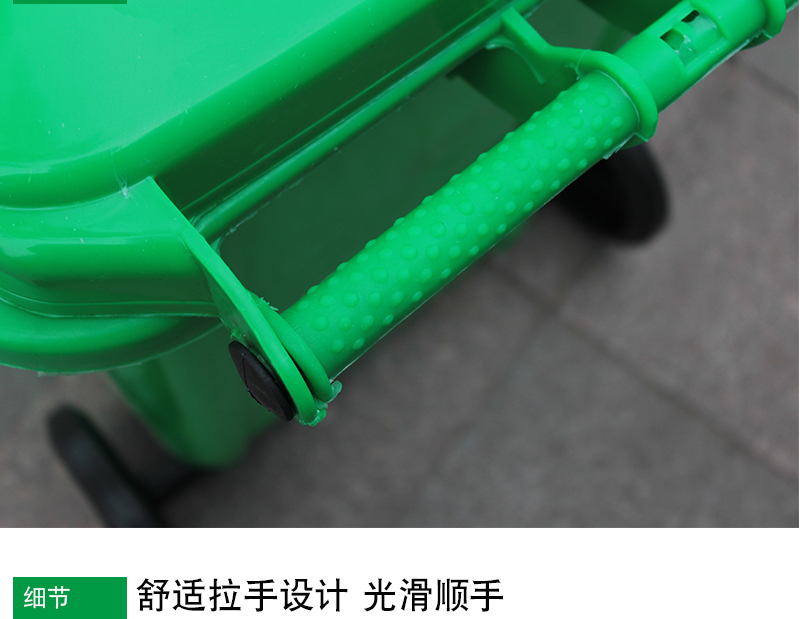 產(chǎn)品名稱 專用掛車塑料垃圾桶 產(chǎn)品型號 ZX-G240L 產(chǎn)品顏色 綠色 外桶材質(zhì) HDPE 規(guī)格(mm) 240L 產(chǎn)品重量 13-15KG 建議使用場景 公園、樓盤小...