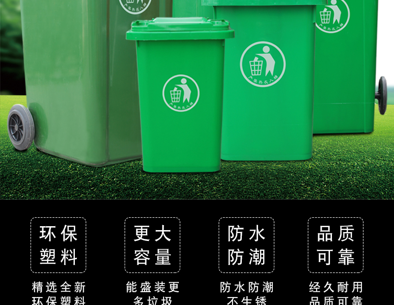 產(chǎn)品名稱 660升塑料垃圾桶 產(chǎn)品型號 ZX-660L 產(chǎn)品顏色 綠色/灰色/藍(lán)色/黃色/紅色 外桶材質(zhì) 聚乙 內(nèi)桶材質(zhì) 聚乙烯 容量 660L 建議使用場景 街...