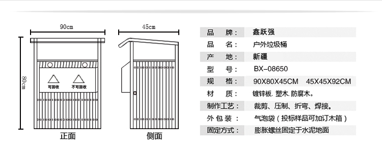 【品名】三分類垃圾桶  【品牌】 中星  【材質(zhì)】優(yōu)質(zhì)鍍鋅板  【內(nèi)膽】鍍鋅板、不銹鋼  【制作工藝】選用優(yōu)質(zhì)不銹鋼鋼板裁剪、壓制、折彎后再焊接而成型  【噴涂工藝】垃圾桶經(jīng)磷化噴砂處理后采用戶...