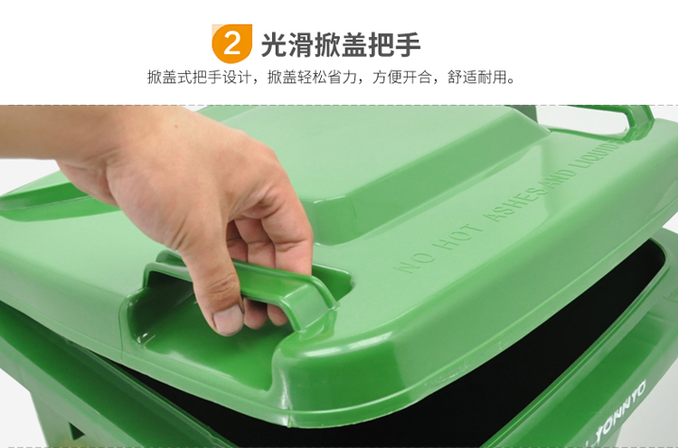 產(chǎn)品名稱 專用掛車塑料垃圾桶 產(chǎn)品型號 ZX-G240L 產(chǎn)品顏色 綠色 外桶材質(zhì) HDPE 規(guī)格(mm) 240L 產(chǎn)品重量 13-15KG 建議使用場景 公園、樓盤小...