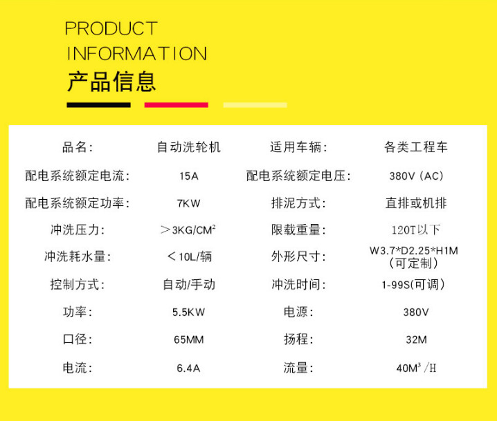 適用范圍:適合在建工地工程車輛沖洗,工程車輛載重量≤120噸