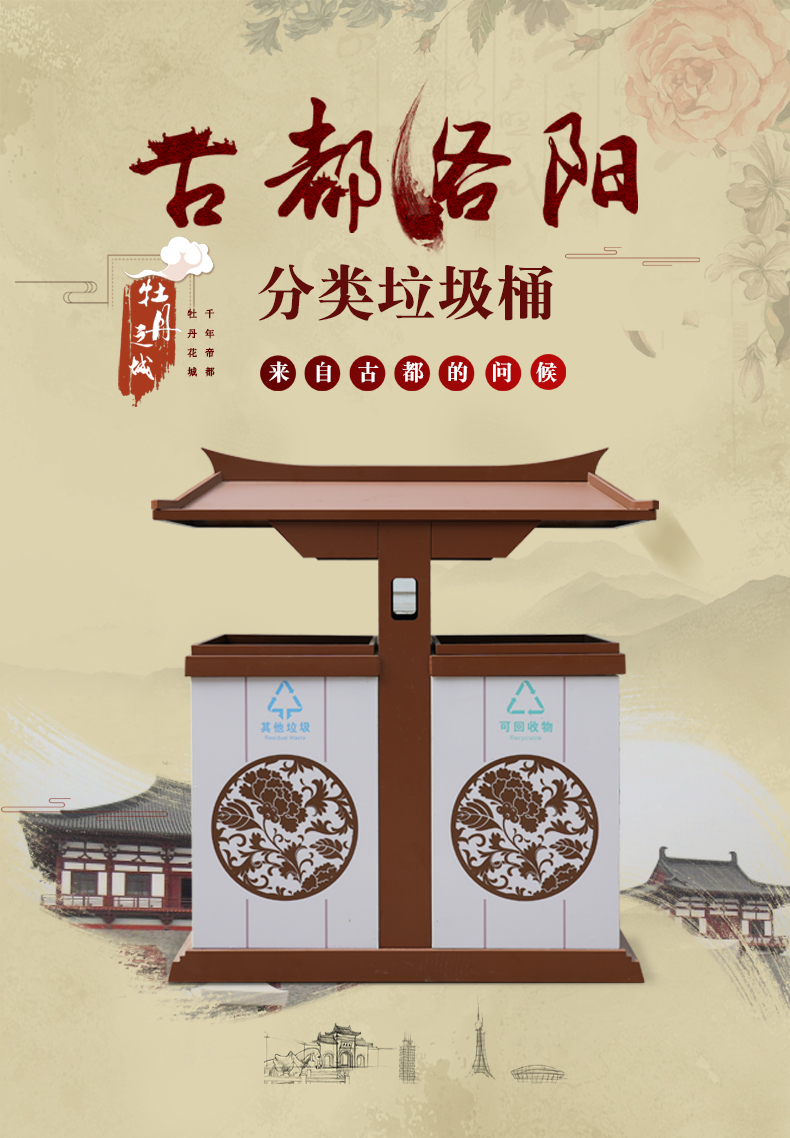 【品名】三分類垃圾桶 【品牌】 中星 【材質(zhì)】?jī)?yōu)質(zhì)鍍鋅板 【內(nèi)膽】鍍鋅板、不銹鋼 【制作工藝】選用優(yōu)質(zhì)不銹鋼鋼板裁剪、壓制、折彎后再焊接而成型 【噴涂工藝】垃圾桶經(jīng)磷化噴砂處理后采用戶...