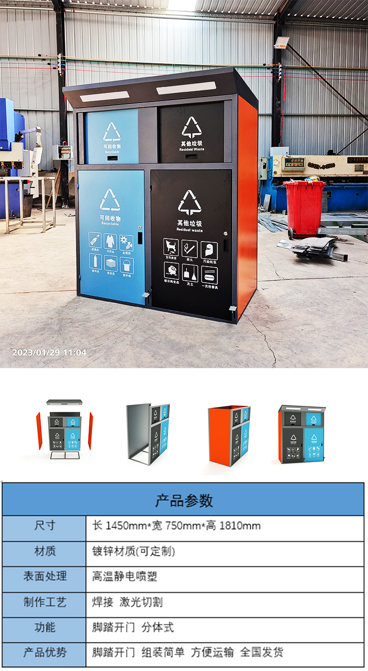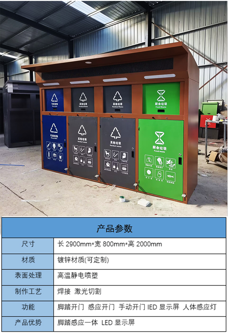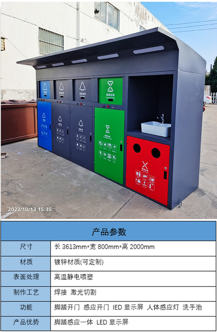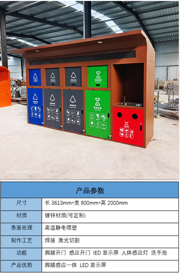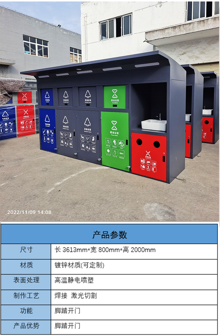 【品名】三分類垃圾桶  【品牌】 中星  【材質(zhì)】優(yōu)質(zhì)鍍鋅板  【內(nèi)膽】鍍鋅板、不銹鋼  【制作工藝】選用優(yōu)質(zhì)不銹鋼鋼板裁剪、壓制、折彎后再焊接而成型  【噴涂工藝】垃圾桶經(jīng)磷化噴砂處理后采用戶...
